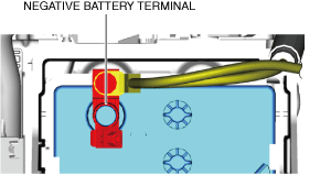 • When removing the battery, do not place the battery on the PCM connector or hit it with the battery. Otherwise, the PCM or PCM connector could be damaged.