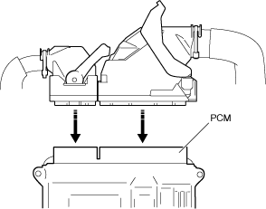 • Do not touch the PCM connector terminal. The terminal is extremely thin and can be damaged by touching it.• If the PCM connector is inserted at an angle and the lever is moved, the connector could be damaged. Verify that the PCM connector is inserted straight.