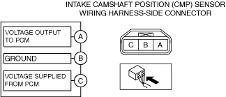 • If not as specified, replace the intake CMP sensor. (See CAMSHAFT POSITION (CMP) SENSOR REMOVAL/INSTALLATION [SKYACTIV-G (WITHOUT CYLINDER DEACTIVATION (US))].)
