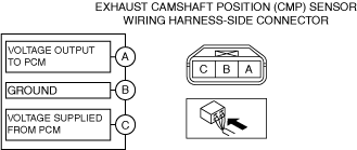 • If not as specified, replace the exhaust CMP sensor. (See CAMSHAFT POSITION (CMP) SENSOR REMOVAL/INSTALLATION [SKYACTIV-G (WITHOUT CYLINDER DEACTIVATION (US))].)