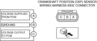 2.Measure the output voltage wave pattern between CKP sensor terminals C and B using an oscilloscope.