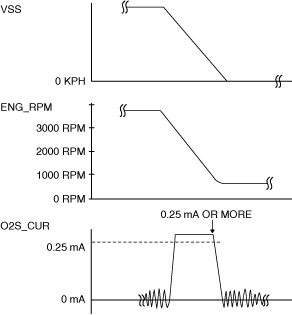 6.Verify that the A/F sensor output current (PID: O2S_CUR) is 0.25 mA or more while decelerating as shown in the figure.
