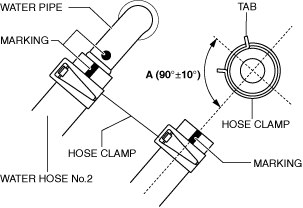 • Verify that the installation angle of the hose clamp is within the range shown in the figure.