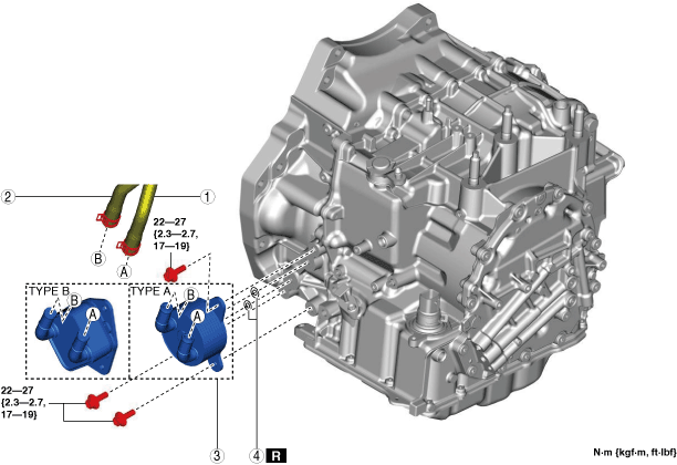 9.Add the ATF. (See AUTOMATIC TRANSAXLE FLUID (ATF) REPLACEMENT [EV6A-EL, EV6AX-EL].)