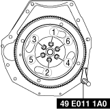 2.Tighten the new drive plate installation bolts uniformly in two or three steps in the order shown in the figure.