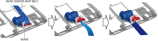 4.Remove the rear center seat belt from the guide as shown in the figure.