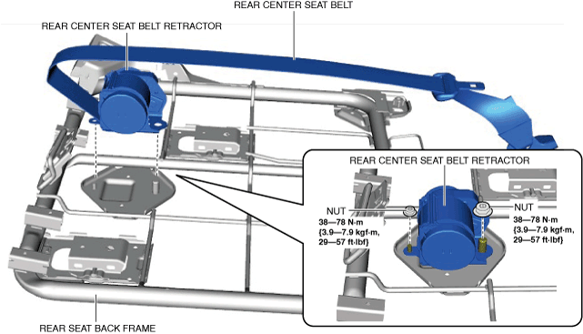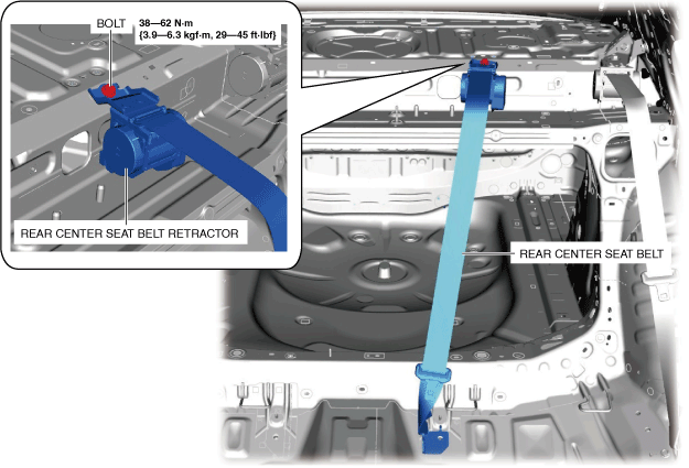 8.Install in the reverse order of removal. (See Rear center seat belt installation note.)