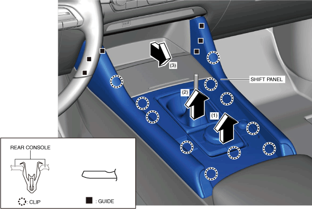 • When replacing the shift panel, remove the following parts: