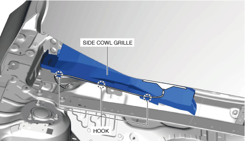 9.When removing the side cowl grille, perform the following procedure: