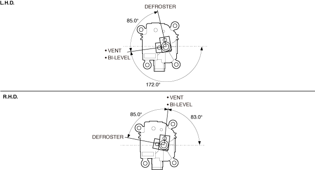7.If it does not operate as shown in the figure, replace the rear vent actuator. (See REAR VENT ACTUATOR REMOVAL/INSTALLATION [FULL-AUTO AIR CONDITIONER].)