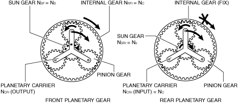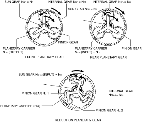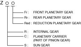 ― Z: Number of teeth― N: Rotation speed― Additional character R: Internal gear― Additional character S: Sun gear― Additional character C: Planetary carrier (pinion gear)