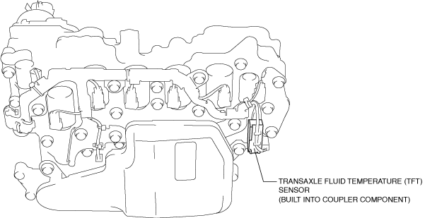 • The transaxle fluid temperature (TFT) sensor is integrated with the coupler component and installed to the control valve body.