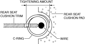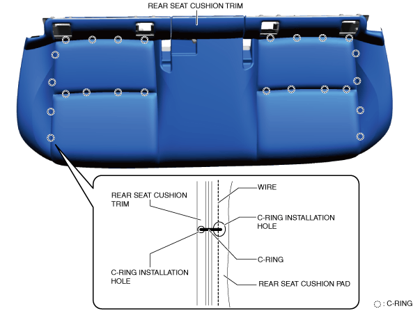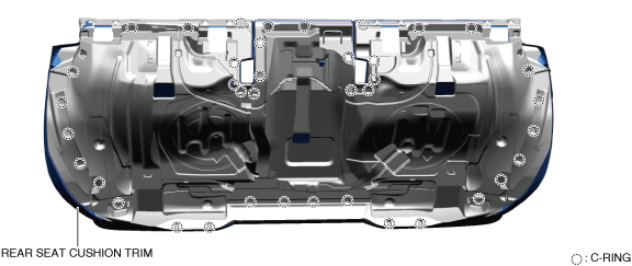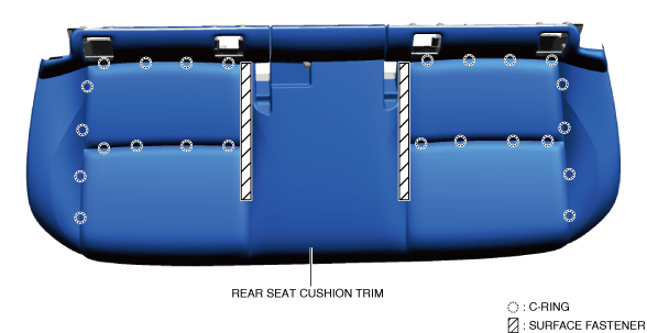 • If a C-ring is damaged when removing or installing the rear seat cushion trim and the rear seat cushion pad, it may not be possible to correctly install the rear seat cushion trim and the rear seat cushion pad. When removing or installing the rear seat cushion trim and the rear seat cushion pad, be careful not to damage the C-rings.• If a C-ring is damaged, replace it with a new one.