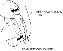 2.Press the rear seat cushion pad inward while pulling the rear seat cushion trim outward.
