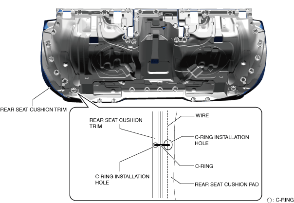 1.Align the C-ring installation holes of the rear seat cushion trim with the C-ring installation holes of the rear seat cushion pad and install the C-rings to the positions shown in the figure.