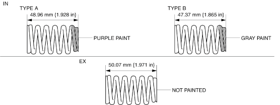 • The valve springs differ depending on IN and EX sides. Therefore, verify the free length or identification paint beforehand and assemble the valve springs correctly.
