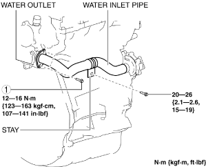• Do not apply oil (such as engine oil, ATF) to the O-ring of the water inlet pipe. Otherwise, the O-ring could swell causing a seal malfunction.