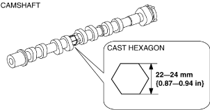 • Width at the cast hexagon of the camshaft is 22—24 mm {0.87—0.94 in}.