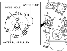 1.Align the water pump pulley hole with the water pump hole as shown in the figure.