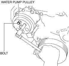 4.Remove the bolt used for locking the water pump pulley against rotation.