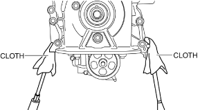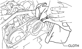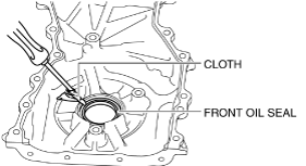 2.Using a screwdriver wrapped in a cloth, peel the sealant away a little at a time, and remove the engine front cover.