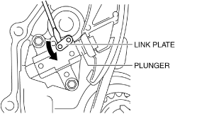 3.Push back the plunger slowly in the direction shown in the figure with the link plate still pushed down. (Chain tensioner (type A))