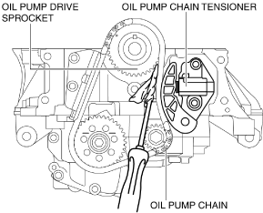 7.Remove the oil pump chain and balancer shaft sprocket as a single unit.