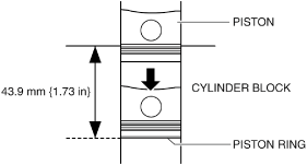 1.Using the piston, press the piston ring parallel into the cylinder to 43.9 mm {1.73 in} from the upper end of the cylinder block.