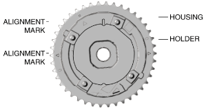 1.Verify that the alignment mark of the holder and alignment mark of the housing on the hydraulic variable valve timing actuator are aligned and fitted.