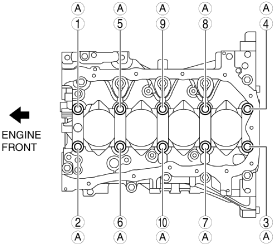 3.Loosen the lower cylinder block installation bolts A in two or three passes in the order shown in the figure and remove them.