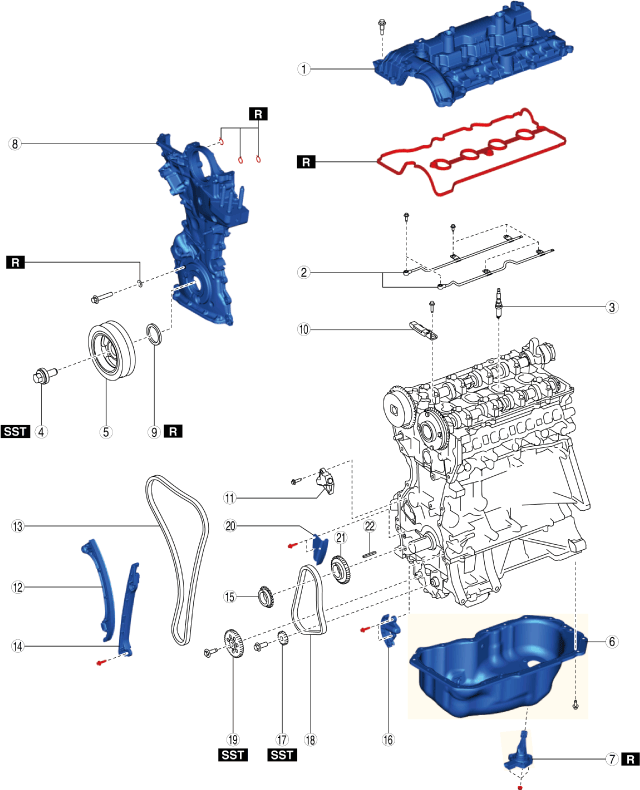 • Verifying the chain tensioner type is necessary because the following procedures may differ according to the type of tensioner.