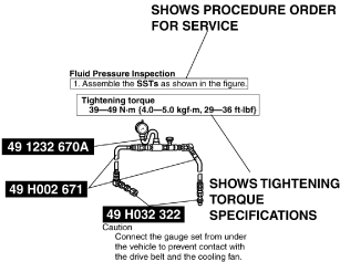 3.Procedure steps are numbered and the part that is the main point of that procedure is shown in the illustration with the corresponding number. Occasionally, there are important points or additional information concerning a procedure. Refer to this information when servicing the related part.