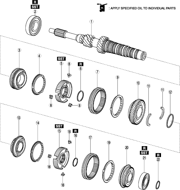 1.Assemble the primary shaft component using the procedure shown in the figure.