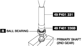 1.Set the primary shaft and new ball bearing, and the SSTs in a press as shown in the figure.