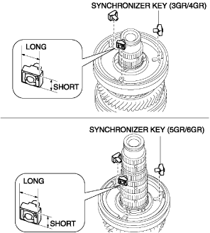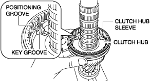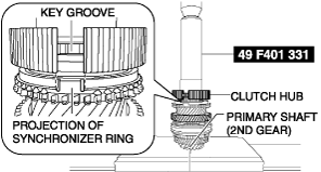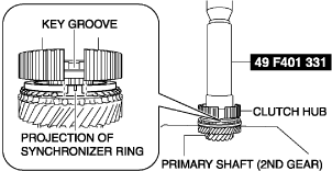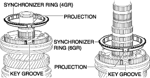 2.Align the projection of the synchronizer ring with the key groove of the clutch hub.