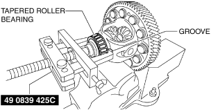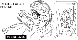 2.Remove the tapered roller bearing (clutch housing side) using the SST.