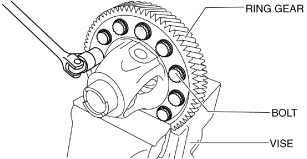 3.Tap the ring gear using a plastic hammer and remove the ring gear.