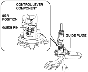 4.Move the control lever component to set the guide pin to the 5GR position of the guide plate.
