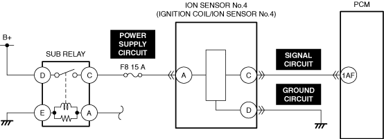 • After the engine is started, when the engine speed is 2,000 rpm or less, the signal input to the PCM from ion sensor No.4 is in error.