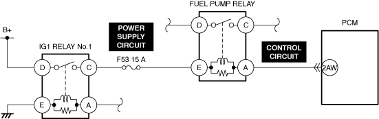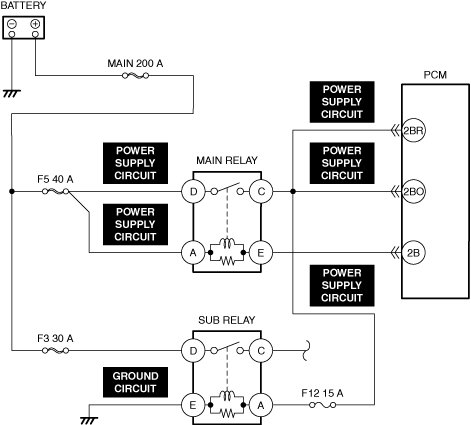 • Power is not supplied from sub relay and/or fuel pump relay