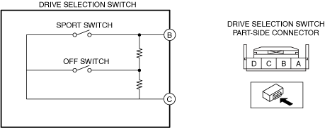 3.Measure the resistance between drive selection switch terminals B and C using a tester.