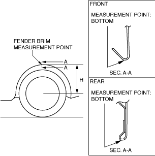7.Measure dimension H from the edge of the fender to the center of the wheel on both the left and right sides.