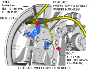 7.Remove the rear ABS wheel-speed sensor and the bracket from the wheel hub component.