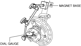 8.Install the magnet base and dial gauge as shown in the figure and inspect for excess play in the axial direction of the wheel bearing.