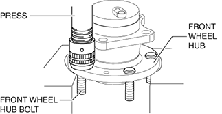 1.Remove the front wheel hub bolt from the front wheel hub using a press.