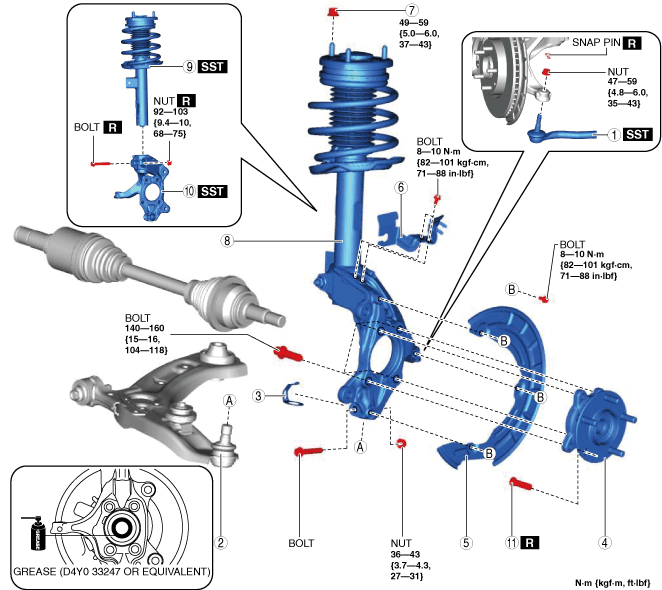 14.When the steering knuckle is replaced, inspect the wheel alignment and adjust it if necessary. (See FRONT WHEEL ALIGNMENT [(US)].)