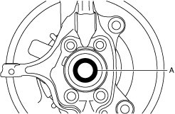 1.Apply grease (L2Y1 33247 or equivalent) to the wheel bearing inner race and front drive shaft contact surfaces (area A in the figure).