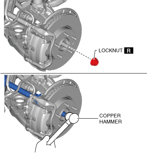 • When removing the locknut, remove it manually without using an electric or pneumatic tool. Otherwise, the locknut may seize.• When removing the locknut, do not apply load at the ground to the axle. Otherwise, it could damage the wheel hub.