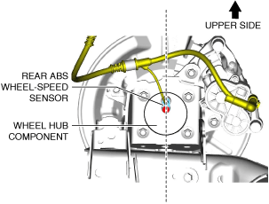 1.Install the wheel hub component with the rear ABS wheel-speed sensor toward the upper side.