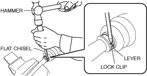 1.Using a flat chisel and hammer, lightly tap the lever of the boot band to disconnect the lock clip.